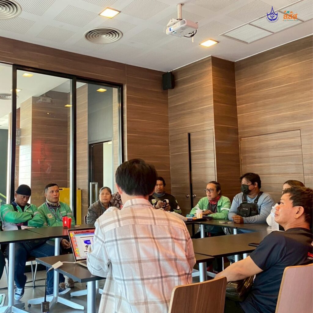 กลุ่มไรเดอร์จากพื้นที่กรุงเทพ–รังสิตร่วมเปิดวงพูดคุยในหัวข้อ “เราคือใครภายใต้การทำงานแพลตฟอร์ม และสิทธิที่เราควรได้” โดยมี ผู้ช่วยศาสตราจารย์ ดร.กฤษฎา ธีระโกศลพงษ์ จากคณะสังคมสงเคราะห์ศาสตร์ มหาวิทยาลัยธรรมศาสตร์ ร่วมแลกเปลี่ยน ทำหน้าที่ปูพื้นมิติทางกฎหมายและสังคม เพื่อชวนไรเดอร์ทำความเข้าใจสถานะของตนเองในระบบเศรษฐกิจแพลตฟอร์ม